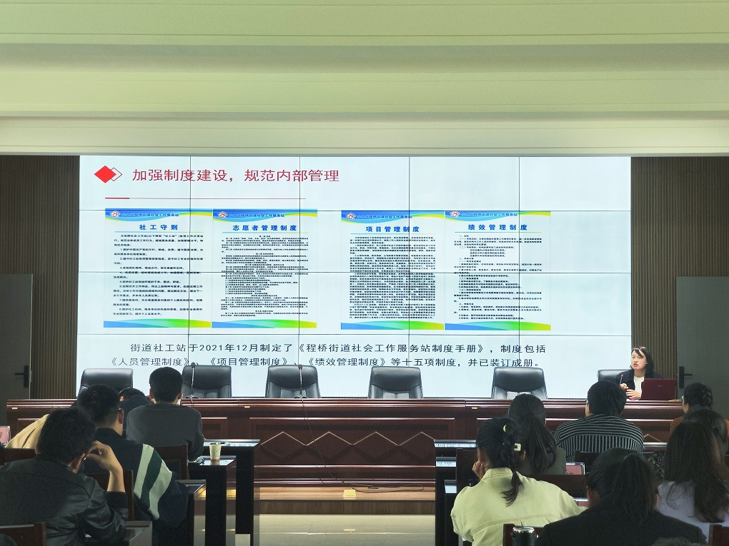 南京市六合区程桥街道社会工作服务站副站长、中级社会工作师褚芳芳以程桥街道社会工作服务站为例分享了街道社工站建设的实践经验,介绍了程桥街道社工站的基本情况、服务模式和服务体系,并从队伍建设、需求调研、宣传渠道、专业服务、培育增能、资源整合、挖掘社区特色、完善社区功能、带动居民参与等九个方面分享了程桥街道社工站的主要做法,并分享了如何总结凝炼服务成果,扩大服务影响力。