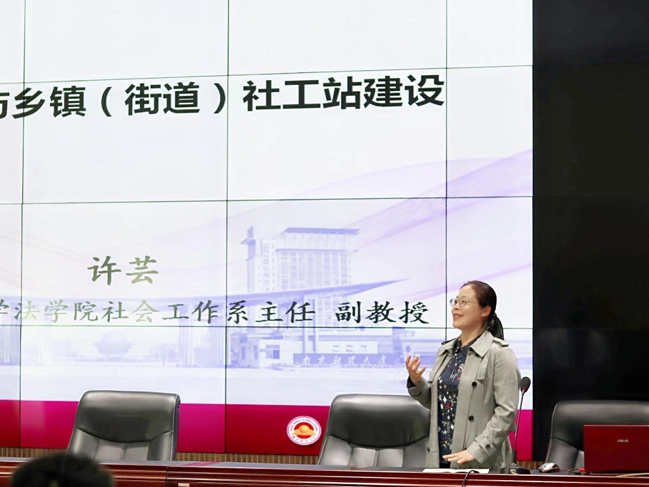 南京财经大学法学院社会工作系主任、副教授许芸老师以“乡村振兴与乡镇(街道)社工站建设”为主题,解读了乡村振兴战略的政策背景和内涵要求,讲解了镇街社工站助力乡村振兴的“道、法、术、器”,即功能定位、制度要求、具体路径和方法技巧,分别列举了社工站参与产业振兴、人才振兴、文化振兴、生态振兴、组织振兴的具体案例,指出要建立五社联动长效机制,运用整合社会工作方法,做实五项服务。最后许芸老师分析了目前江苏省镇街社工站的建设现状和困境,并提出了镇街社工站高质量发展的思考。