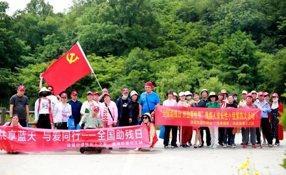 为进一步弘扬中华民族扶残助残的传统美德,逐步形成全社会都来理解、关心、帮助残疾人的社会氛围,帮助残疾人树立自尊、自信、自立、自强的信念,为迎接第三十三次全国助残日,5月16日,盘城街道残疾人之家联合盘城街道社工站以及汤泉街道社工站,邀请辖区内的残疾人参加助残日“共享蓝天 与爱同行”不老村徒步活动。此次活动有残疾人及家长和工作人员共48人参加。