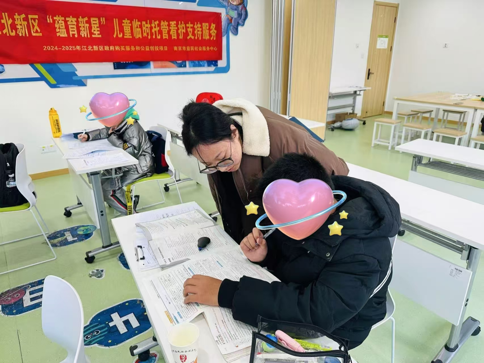 近日,为缓解江北新区职工家庭假期孩子“看护难”问题,南京市益民社会服务中心在江北新区2024-2025年政府购买服务和公益创投项目的资金支持下,启动了“蕴育新星”公益托管第一期服务。本次活动旨在为孩子们提供一个安全、温馨的学习和娱乐环境,特别是辖区内的困境儿童,以减轻家长们的压力。