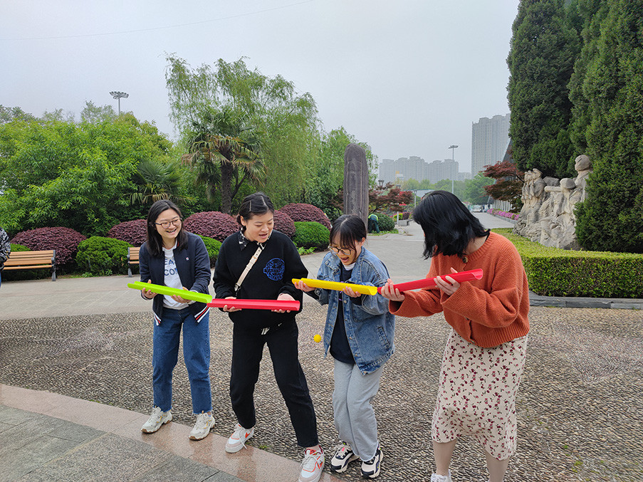 最美人间四月天,不负春光与时行。25日上午10点,大家齐聚在绿博园。雨后的绿博园,清新湿润,空气里都夹杂着泥土的芬芳。首先,理事长组织我们围成一个圈进行自我介绍,每位员工详细介绍自己所在项目点,各自分工,以便后期资源共享。介绍完毕,大家先来个热身游戏“抛接球”。别看有些是第一次接触的伙伴,游戏起来尤为默契。不知不觉中大家的距离越来越近......