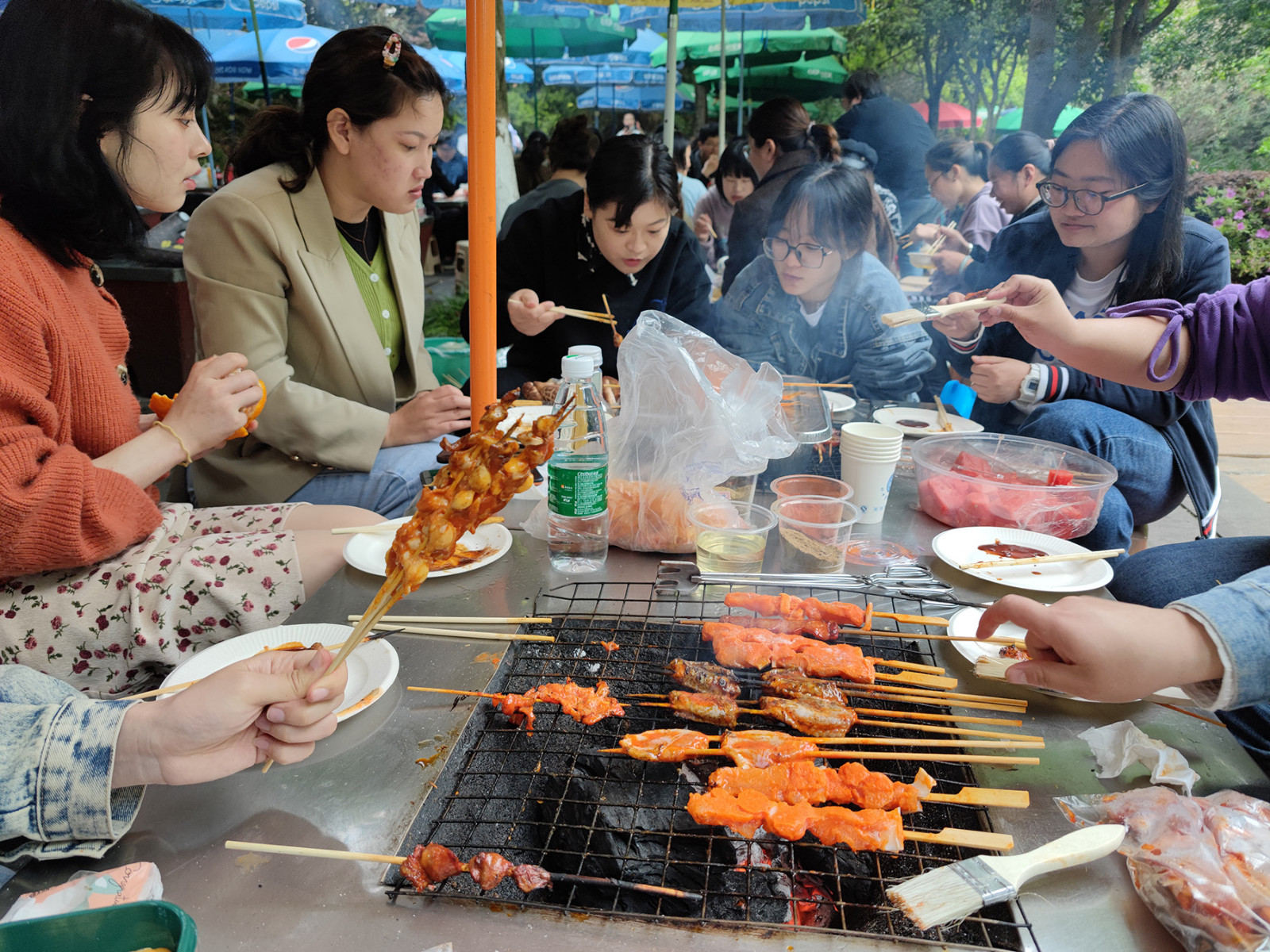 游戏互动结束后,大家来到烧烤园,以小组为单位,领取食材后,纷纷实施自己的“美食计划”。分享美味的同时“餐桌会议”也在如火如荼进行,组员间互相交流学习,讨教项目经验,分享彼此工作心得,取长补短,提升自我,共同促进机构向上发展。